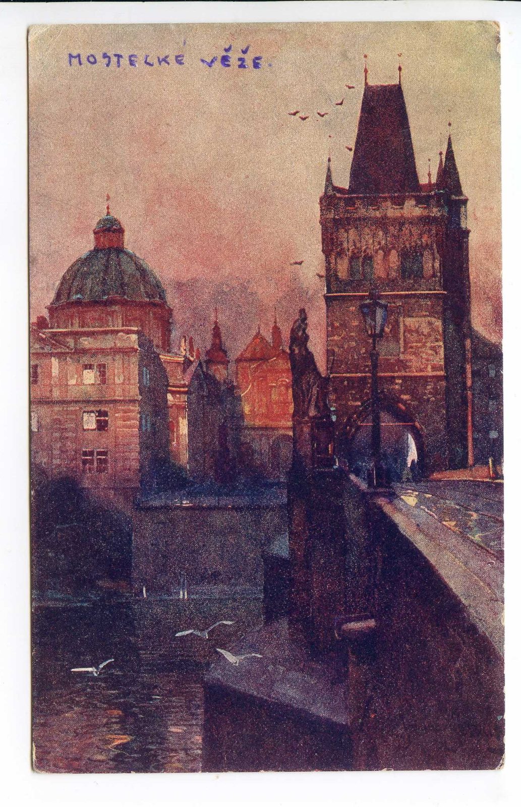 Praha, Staroměstské mostecké věže, prošlá poštou, stržena známka, stav viz. sken.