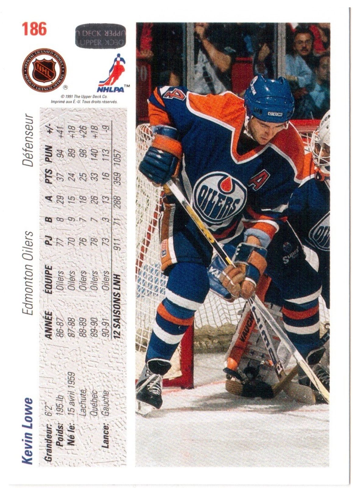 HK119 - Upper Deck karta - Kevin Lowe č.186 (1991-92)