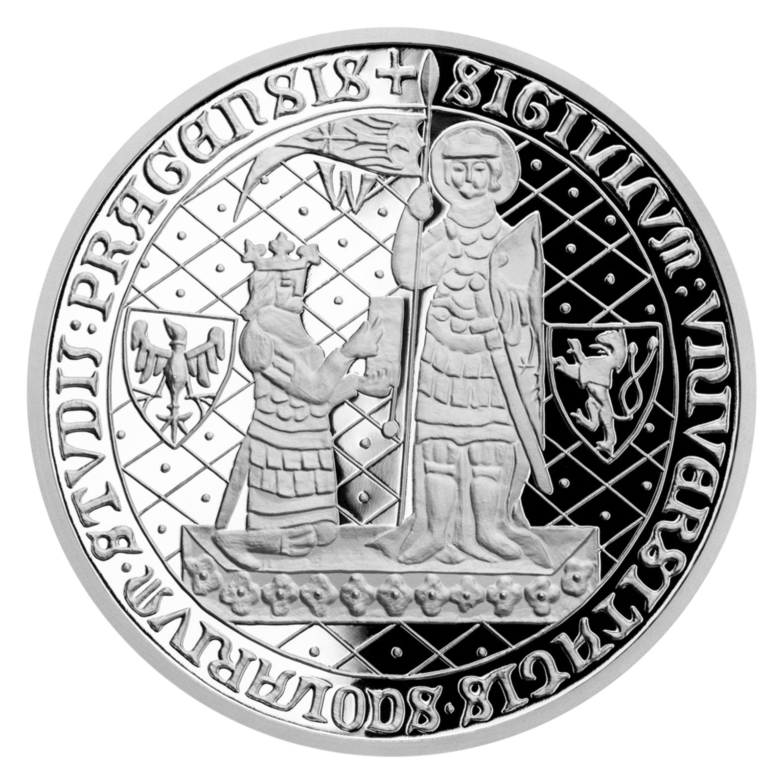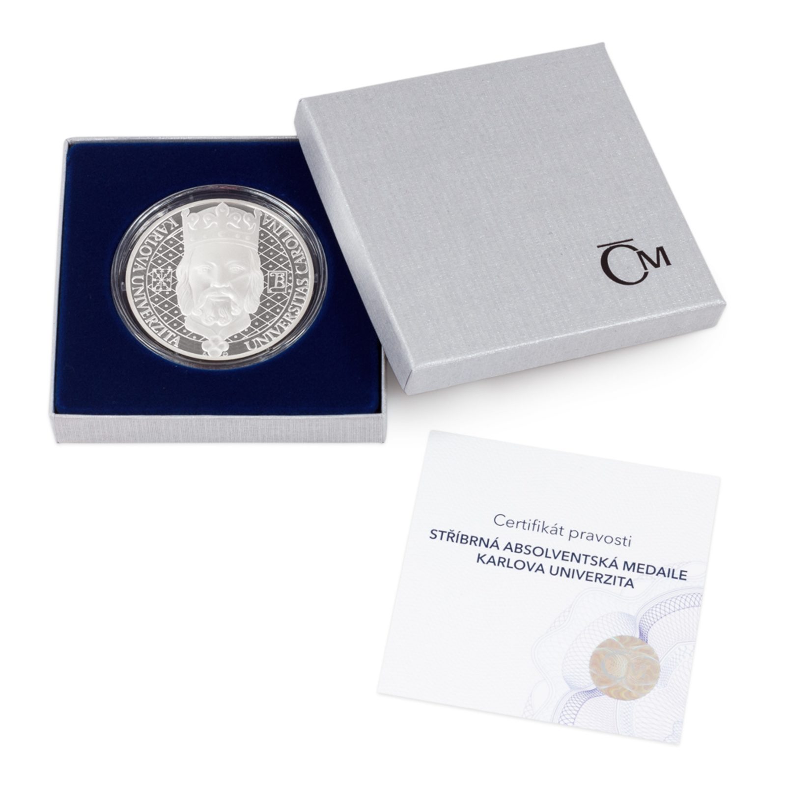 Roku 1348 založil Karel IV. univerzitu, která časem přijala jeho jméno. Dostala se i na seznam nejlepších univerzit světa a její absolventi mají dveře otevřené dokořán prakticky kamkoliv přijdou. A právě jim (ale nejen) je věnována tato stříbrná absolventská medaile, kterou mohou být obdarováni za úspěšné získání titulu.