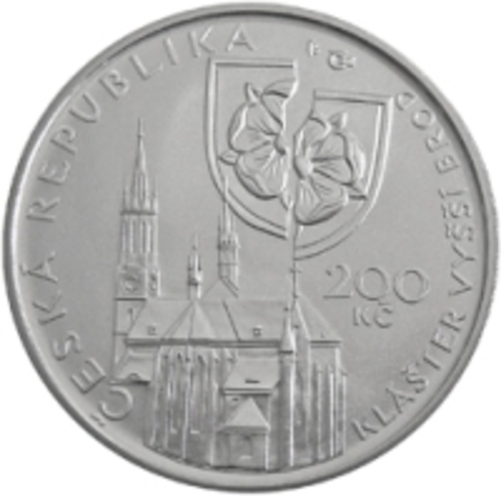 Reverzní straně pak vévodí vyobrazení kláštera ve Vyšším brodě. Na vrcholku jedné z jeho věží balancuje rozlomený rožmberský erb s růží. V částečném opisu hranu mince rámují nápisy ČESKÁ REPUBLIKA a KLÁŠTER VYŠŠÍ BROD.