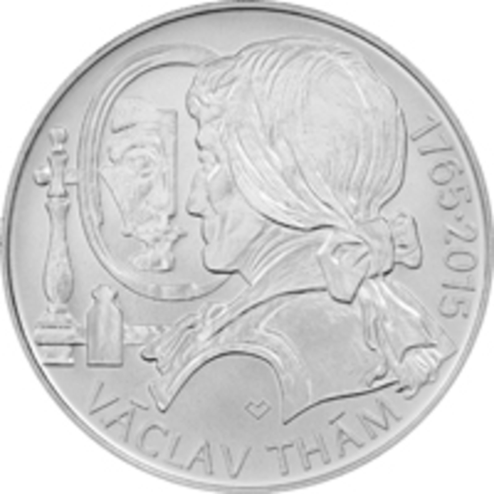 Dnem 21. října 2015 vydává Česká národní banka pamětní stříbrnou pětisetkorunu k 250. výročí narození Václava Tháma. Pětisetkoruna je ražena ze slitiny obsahující 925 dílů stříbra a 75 dílů mědi a vydává se ve dvojím provedení, v běžném a špičkovém (proof), které se liší povrchovou úpravou a provedením hrany. U mincí špičkové kvality je pole mince vysoce leštěné a reliéf je matován, hrana je hladká s vlysem „ČESKÁ NÁRODNÍ BANKA * Ag 0.925 * 25 g *“. Mince běžné kvality mají hranu vroubkovanou. Průměr mince je 40 mm, hmotnost 25 g a síla je 2,8 mm.